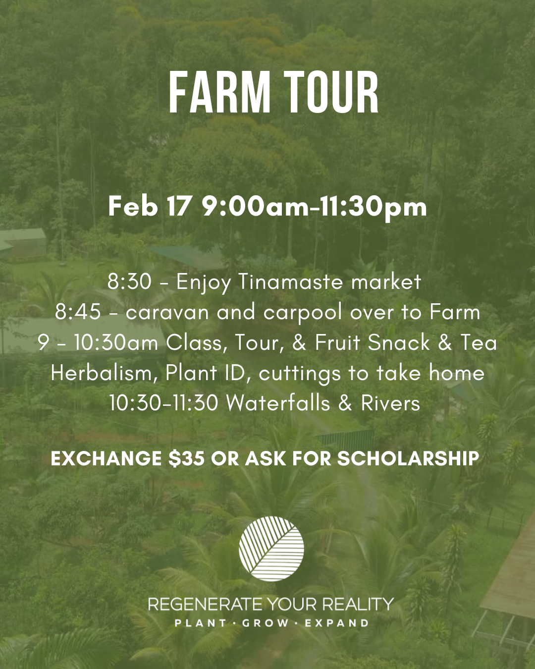 Discover our permaculture and sovereignty education model. Together we gather medicinal garden cuttings, ID plants & trees, abundant fruits, explore waterfalls, drink medicinal tea, and fruit snack together. After this fun and educational experience you will walk away feeling like you, too, can regenerate your reality and live in abundance through application of permaculture tools and principles.